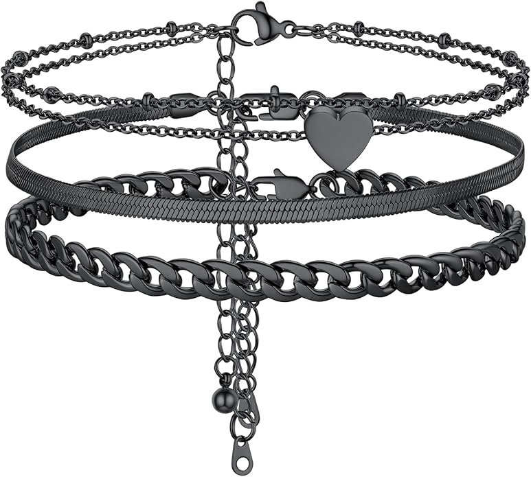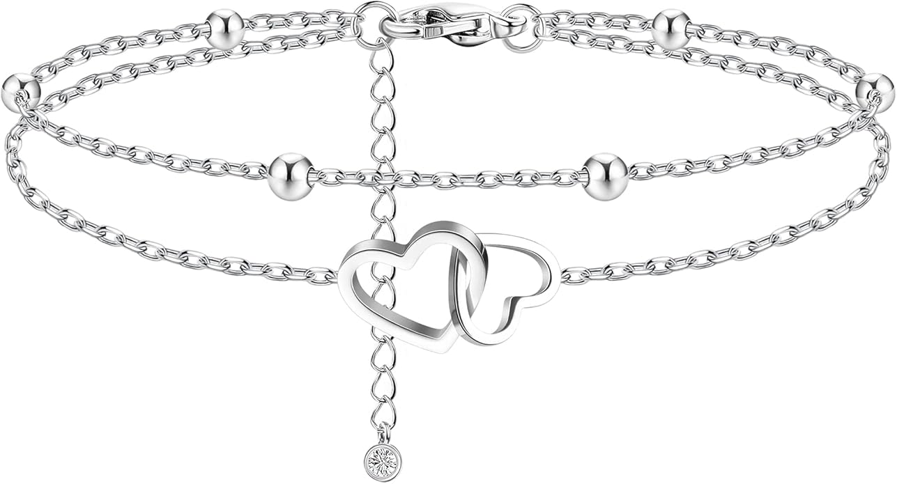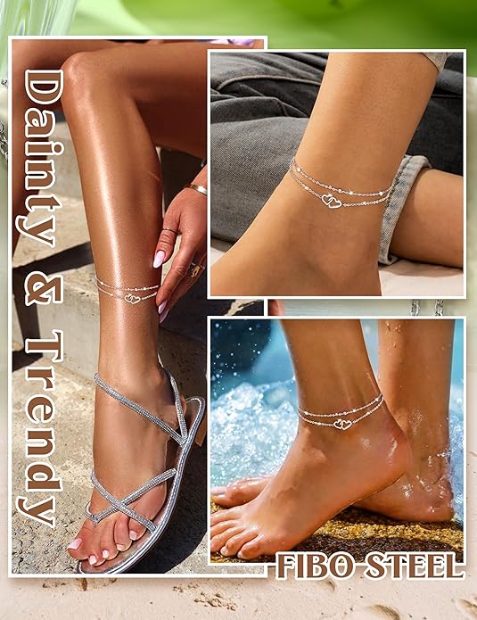 FIBO STEEL Stainless Steel Ankle Bracelet for Women Teens Cute Butterfly Sequin Infinity Cross Heart Evil Eye Pendant Layered Anklets Adjustable Foot Jewelry