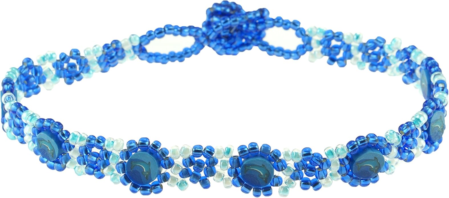 Fimo Discs with Dolphin Design on Blue Glass Seed Beads Anklet