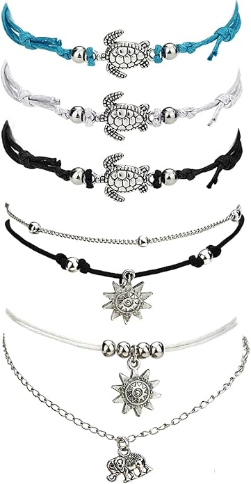 Suyi Beach Turtle Anklet Boho Handmade Adjustable Anklet Layered Rope Anklet Foot Chain for Women