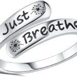 Dandelion Just Breathe Ring for Women 925 Sterling Silver Adjustable Hope Inspirational Jewelry Encouragement Gifts