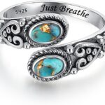 Adjustable Turquoise Rings for Women 925 Sterling Silver Spoon Ring Vintage Heart Vine Statement Ring Personalized Jewelry Gifts Size 6-8